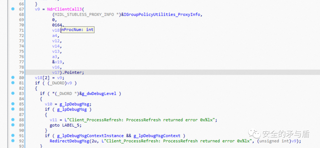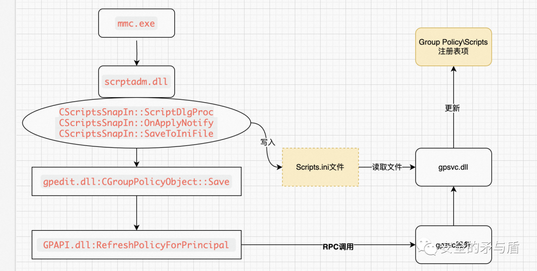 继续分析 GPAPI.dll:RefreshPolicyForPrincipal,发现最后会进行一个rpc远程过程调用,之后结束全部的流程。