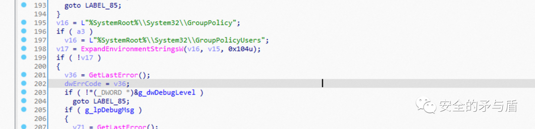 继续分析一下gpsvc.dll, 看到函数ProcessLocalGPO中对文件路径进行了拼接,然后读取相关的文件内容: