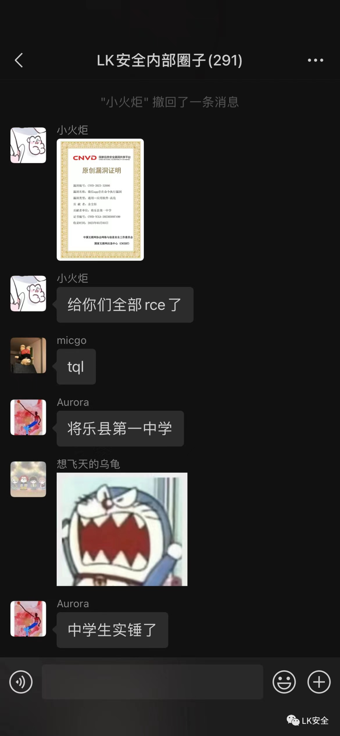 传出去的结果就是各种谣传质疑四起,最终CNVD官方也考虑到影响的问题,将小火炬师傅的CNVD证书回收。