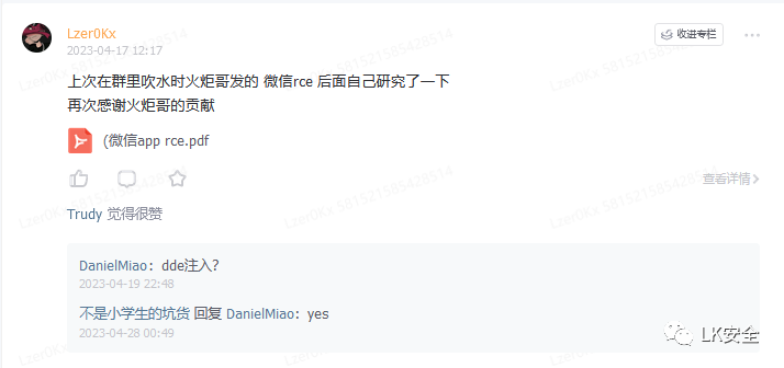今天莫名其妙的一个洞火了,关于微信app rce。主要的起因来自于我们LK安全内部群小火炬师傅的一次分享。