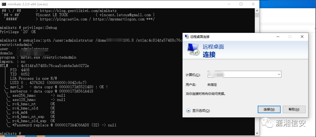 如果使用hash远程登录RDP,需要开启"Restricted Admin Mode"