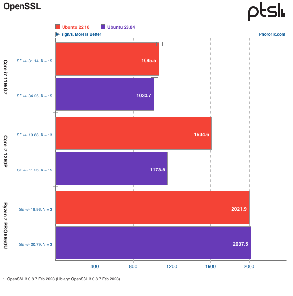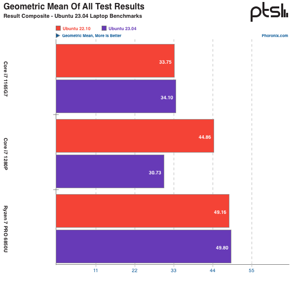 Ubuntu 23.04 "Lunar Lobster" 在前两天正式发布了,虽然系统带来了不少新特性、新功能,以及一些问题修复,但不少还停留在 Ubuntu 22.10 甚至更早版本的用户还是会先观望观望,再决定是否升级。日前外媒 Phoronix 在 Ubuntu 23.04 与 22.10 两个系统上进行了一些初步的基准测试。如果还没升级,不妨先看看两个系统在多项测试中的成绩对比,再来决定。为了了解 Ubuntu 23.04 的性能,测试人员在三台不同的笔记本电脑上进行了 Ubuntu 22.10(含 SRU 更新)和 Ubuntu 23.04 的基准测试,三台设备配置如下:戴尔 XPS 9310,配备英特尔 Core i7 1165G7 Tiger Lake 处理器;