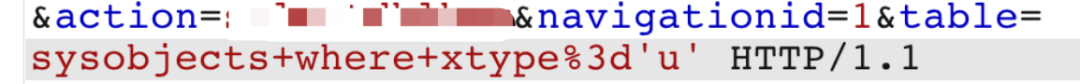 https://xxx.com/1.aspx?plugin=*&action=*&navigationid=1&table={注入点}我看到了table参数,我觉得这可能是sql server table头注入,这是经常做安全测试的一种直觉,我直接输入了sysobject,他给我大量返回了信息: