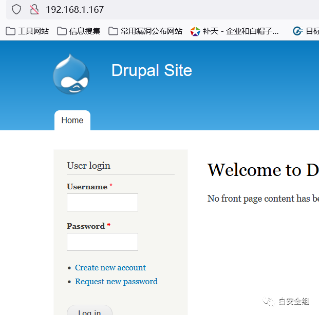 首先进入这个靶场中,我们先了解了这个靶场的cms,是Drupal