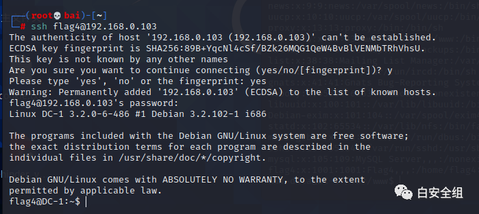 ssh flag4@192.168.0.103我们现在已经成功登录上去了
