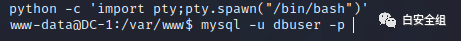 python -c 'import pty;pty.spawn("/bin/bash")'连接进数据库中