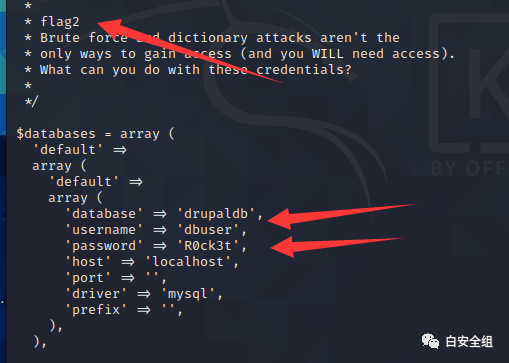 flag2就是这个配置文件,从这个配置文件中我们获取了数据库登录的账号和密码