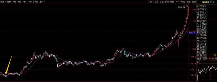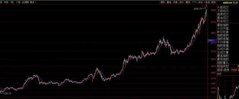 上图是光伏板块指数,这个方向比新能源车启动更早,在19年年初大盘见底之前就提前见底,一直持续到21年年底,板块指数涨幅达到3.5倍。