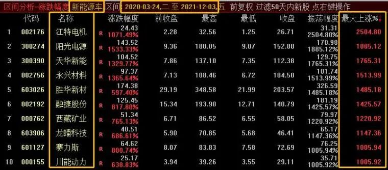 这期间,江特电机最大涨幅达到了26倍,阳光电源作为板块的权重,也有近20倍的涨幅。涨幅前10名的门槛都达到了11倍。虽然板块炒作的跨度很长,但在运行过程中,以上这些大牛股都是轮动拉升,每个小周期都有领涨的分支和领涨股,