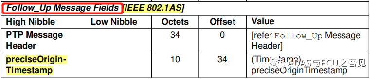 Follow_Up Message头信息定义(IEEE802.1AS)