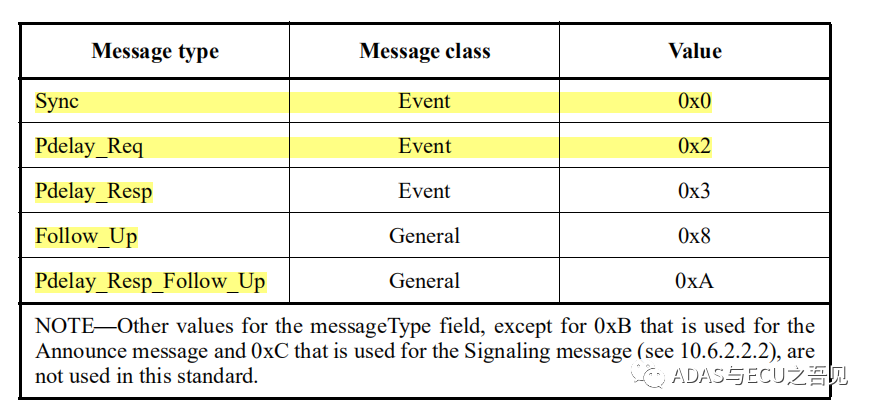 在AUTOSAR中的gPTP协议支持SYNC, Follow-up,Pdelay_Req,Pdelay_Resp, Pdelay_Resp_Follow_up 五类报文。