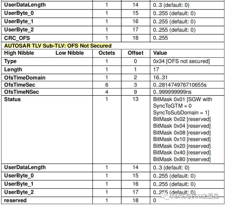 AUTOSAR规范下的SYNC报文与IEEE802.1AS规范下的SYNC报文Payload内容一致,不再过多赘述。