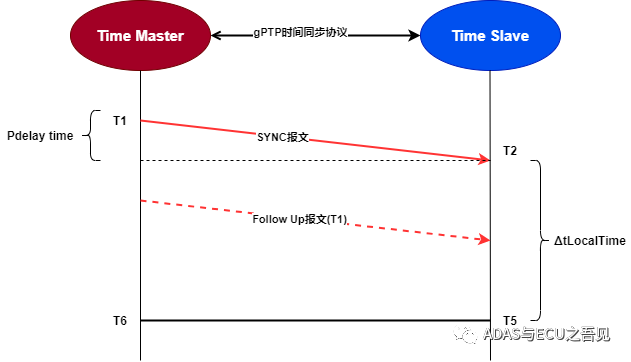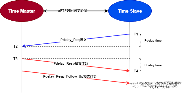 其中Pdelay time通过上述延时时间测量过程得到,最终得到的Time Master与Time Slave的同步时间关系。