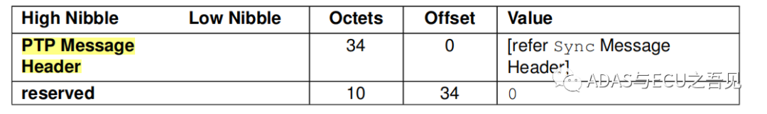 图13 IEEE802.1AS规范下Follow up报文Payload解释说明 SYNC Message头信息定义(AUTOSAR)