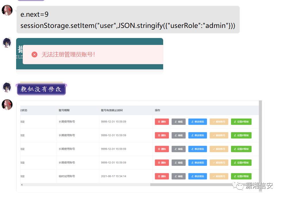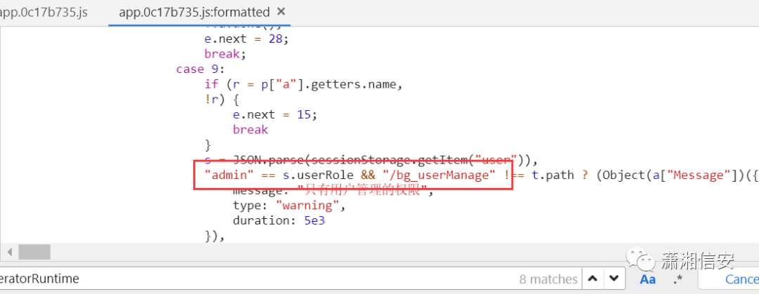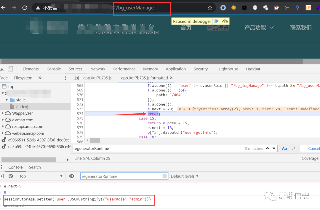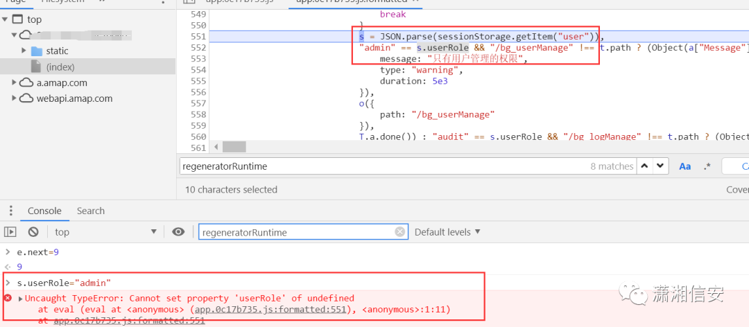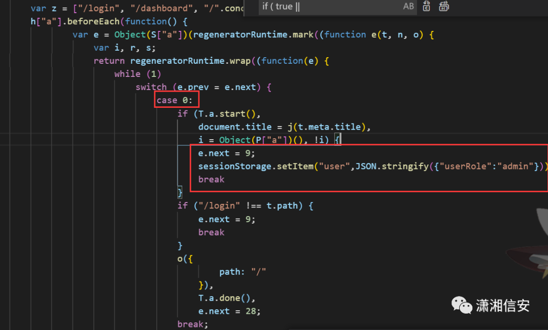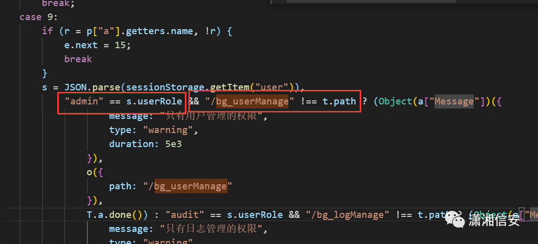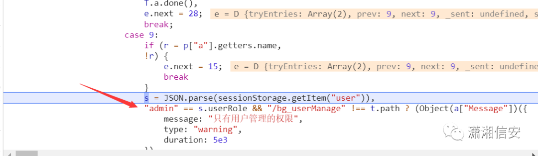 sessionStorage.setItem("user",JSON.stringify({"userRole":"admin"}))他这里先构造一个userRole=admin的json然后在进行写入本地的sessionStorage?