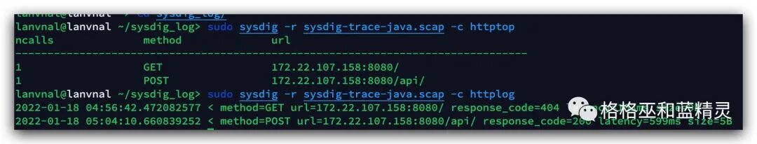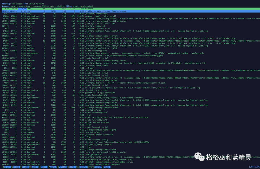sudo sysdig -w sysdig-trace-java.scap proc.name=java运行我们的漏洞环境