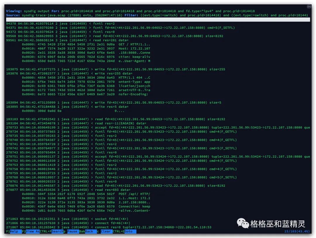 sudo sysdig -r sysdig-trace-java.scap同样的可以添加过滤条件