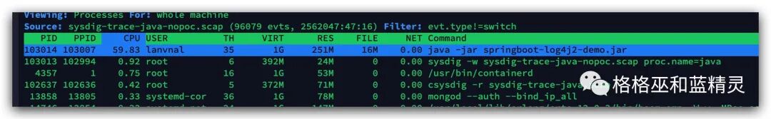 java -jar springboot-log4j2-demo.jar将sysdig的记录输出到文件,方便后续分析
