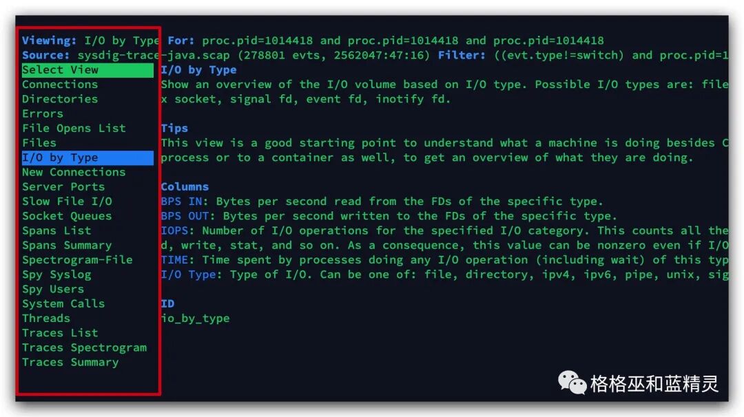 使用csysdig进入分析视图,然后选择我们这个java进程回车进入