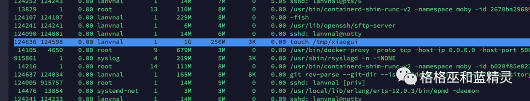 之后使用sysdig开启抓取系统信息,并重新执行一遍命令