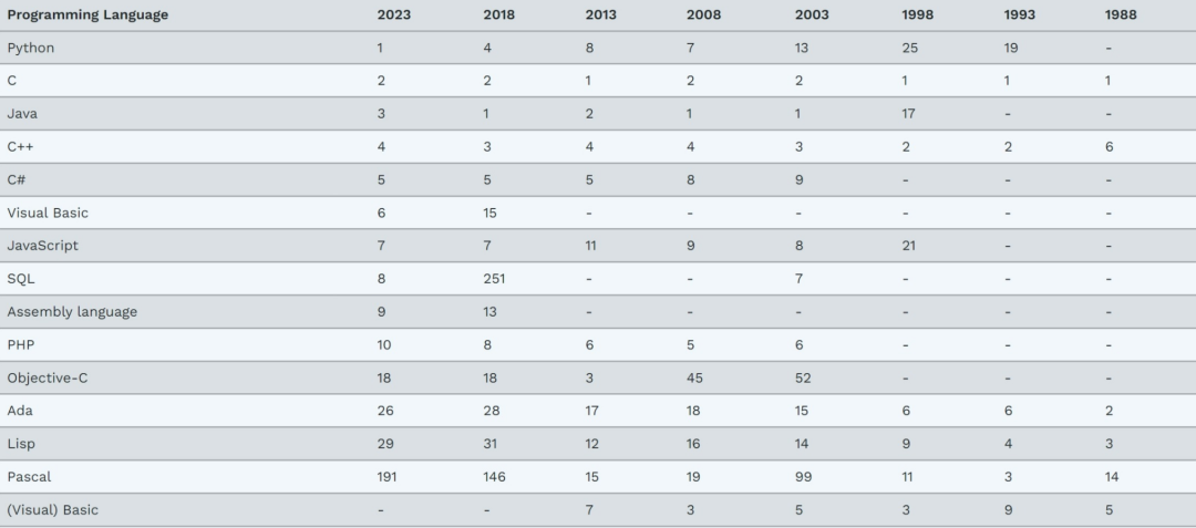 详细榜单信息可参考 TIOBE 官网:https://www.tiobe.com/tiobe-index