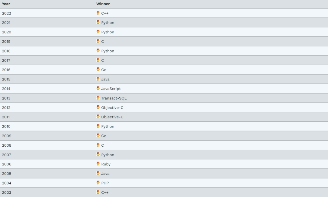这个排行榜可以用来考察你的编程技能是否与时俱进,也可以在开发新系统时作为一个语言选择依据。