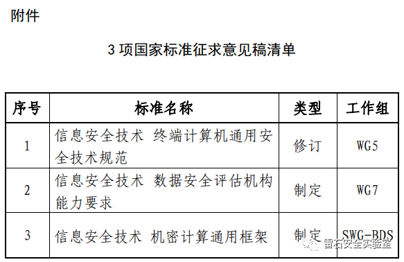 2、通知 | 《信息安全技术 终端计算机通用安全技术规范》等3项国家标准公开征求意见