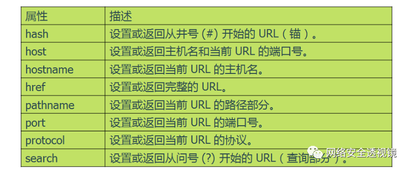 document.referer属性window.name属性location属性innerHTML属性documen.write属性