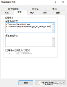 然后点击设置, 设置解压前后运行的程序,这里解压前后运行的程序,名称一定要和木马、正常软件安装程序名称保持一致。