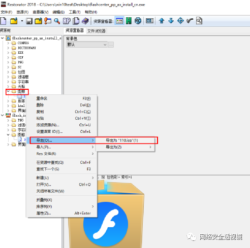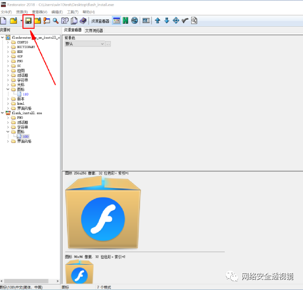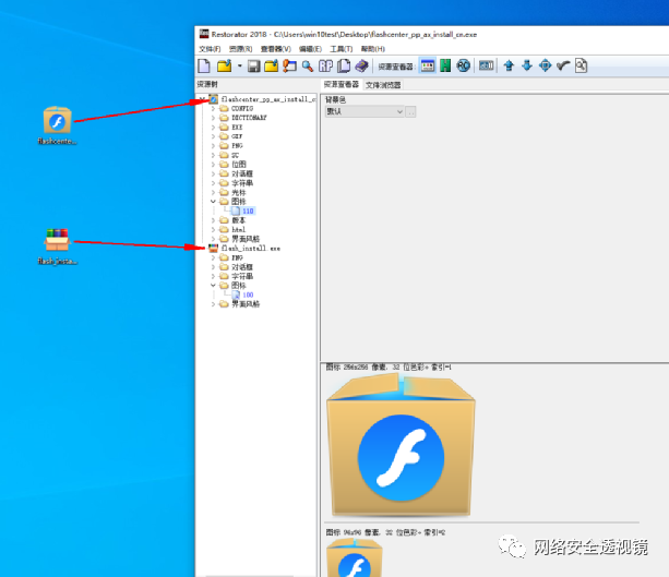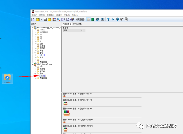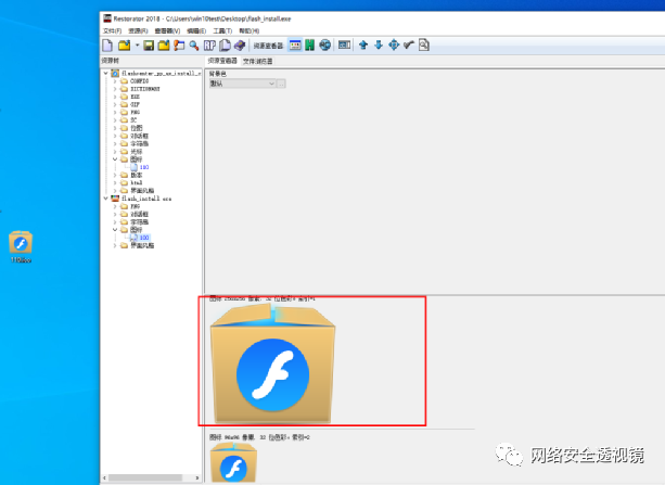 将正常软件安装程序和捆绑后的软件安装程序拖入左侧资源树栏中,找到软件安装图标