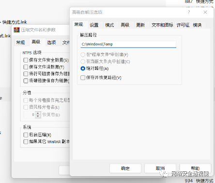 点击高级->自解压选项->常规->设置解压路径,windows路径一般设置为:C:\Windows\Temp 这个路径windows系统是都存在的,一般不会出错。