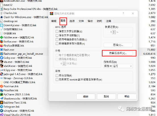 压缩选项如下:常规->压缩选项->创建自解压格式压缩文件