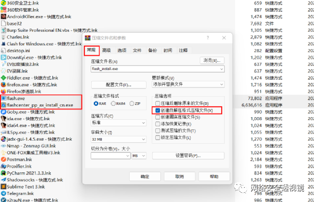 选择要正常的flash安装软件和生成好的木马,添加压缩