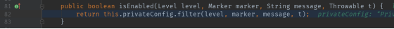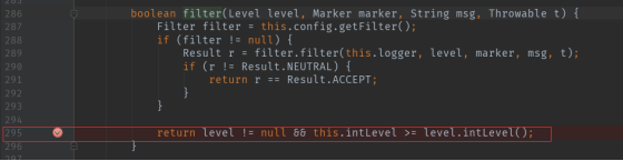 跟进this.privateConfig.filter方法,可看到295就是我们上面说到日志等级条件是否成立的问题。