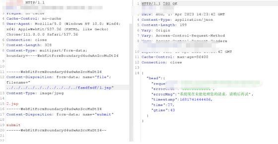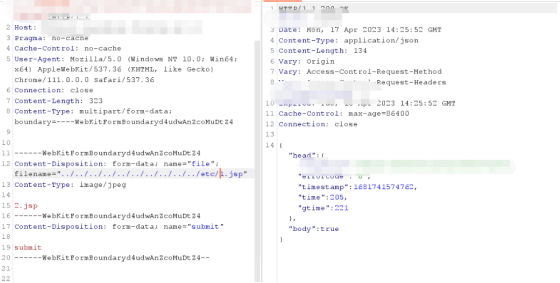 为了证明是可以目录穿越的,尝试上传到不存在的目录,上传到不存在的目录会上传失败,且会返回报错信息。
