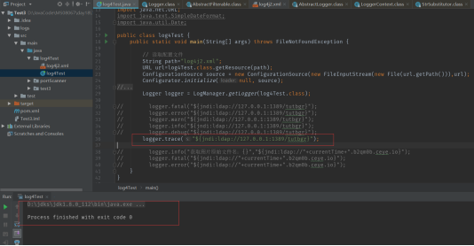 trace方法不成立,直接没打印日志,程序也不会继续往下走jndi注入计算器也没有弹框。