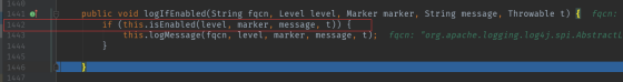 1442行:就是判断条件是否成立的地方,只有条件成立启用日志才会走1443行,只有能走进这1443行后才能进行后续的jndi注入(至于后续怎么解析${}并注入jndi这里就不说了,感兴趣的可以自己去跟踪代码看一下)。