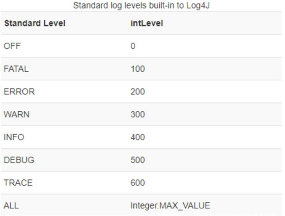 这里可以调用的方法有:fatal(100)、error(200)、warn(300)、info(400)、debug(500),trace(600)则不成立。
