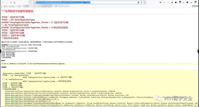 翻看了很多功能点,在一处功能点发现上传接口,并尝试上传文件,发现无法上传,加了白名单。直接选择放弃,继续寻找。在某一个url参数上加上单引号,直接报错,SQL注入这不就来了么。