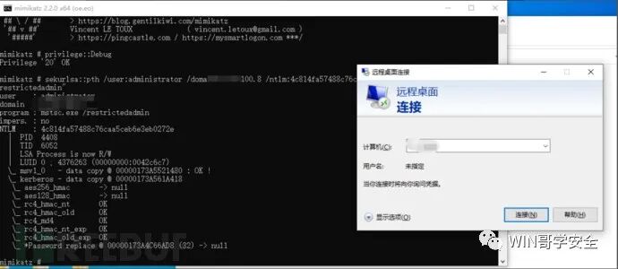 如果使用hash远程登录RDP,需要开启"Restricted Admin Mode"
