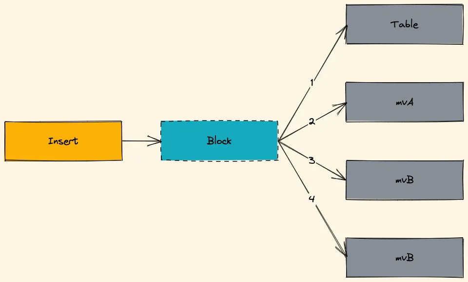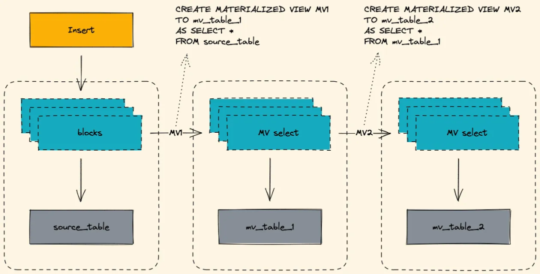 UNION那么下一个问题,对原始表插入数据,数据又怎么经过物化视图跑到目标表的?