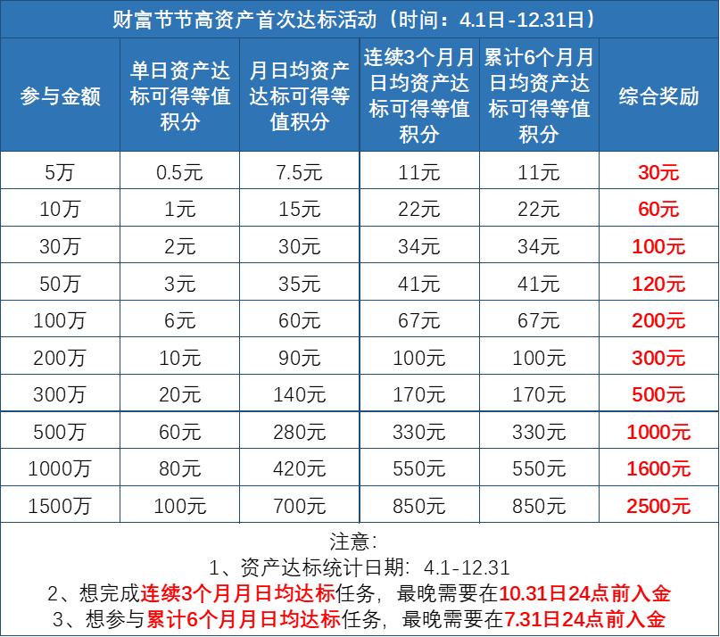 另外还有一个专门针对老客户的【财富节节高】活动可以参加。