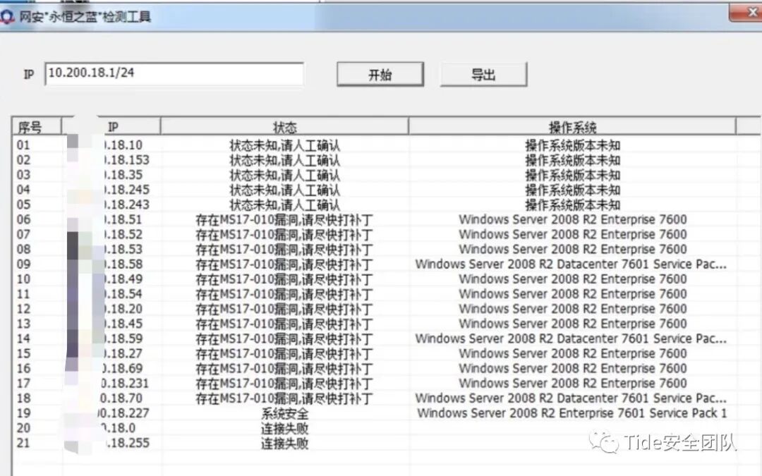 众所周知,传统行业中对于内网管控不是很严格,所以首先对永恒之蓝进行扫描