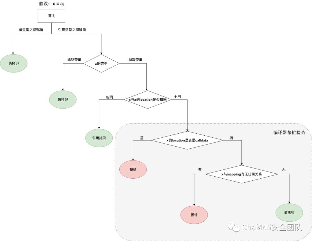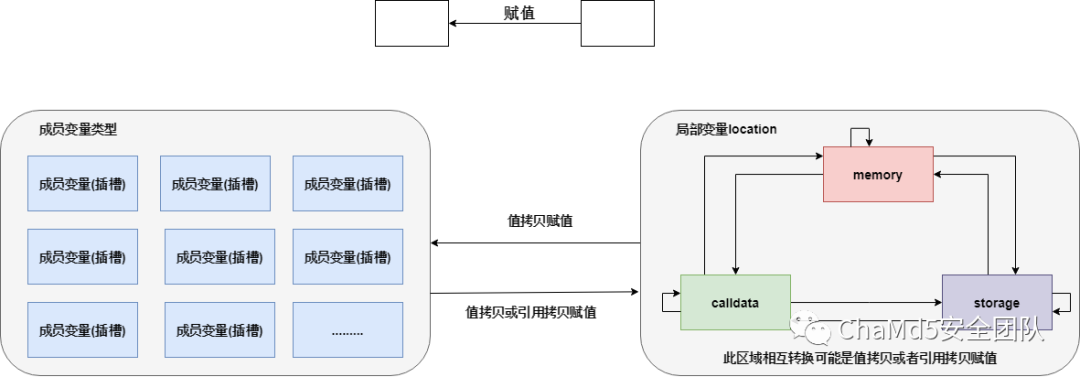 | pragma solidity ^0.8.0;contract MemberVatiable{ int256[] data1; int256[] data2; function getData1() public view returns(int256 memory){ return data1; } function getData2() public view returns(uint256 memory){ return data2; } function insertData1(int256 d) public{ return data1.push(d); } function insertData2(int256 d) public{ return data2.push(d); } //1.成员变量都是存放在storage //2.storage存储位置的变量之间赋值的时候是值拷贝 function setData2ToData1() public{ data1 = data2;//成员变量相互赋值 } //成员变量本质上就是插槽,storage layout function refAndState_1() public{ int256p[] storage dataref = data1;//data1和dataref指向同一个数据块(插槽) //下面这条语句是引用赋值: data2和dataref指向同一个数据块(插槽) dataref = data2; } //成员变量本质上就是插槽,storage layout function refAndState_2() public{ int256p[] storage dataref = data2;//data2和dataref指向同一个数据块(插槽) //下面这条语句是值拷贝 data1 = dataref; } function calldata_ref_right(string calldata name) public{ string calldata temp = name;//引用拷贝 name = temp; } function calldata_copy_wrong(string calldata name) public { //calldata不能成为值拷贝目标 //以下内容报错 //string memory temp = name;//值拷贝 //name = temp; //报错内容:Type string memory is not implicitly convertible to expected type string calldata. } function valueCopy() public{//值类型的数据之间赋值: 只能是值拷贝 uint v1 = 1; uint v2 = 2; v1 = v2; } function refCopy() public{//引用类型的数据之间赋值: //定义一个引用变量,必须指明他的location,否则报错,例如 //string x; ===> 这会报错,应该这么写 string memory x;//或string calldata x;或string storage x; //假如location写成calldata,那么这个变量x就是指向消息调用calldata的一部分calldata //注意:location的calldata指的是数据类型的,而消息调用的数据叫做calldata,两者不同 } function x_1() public{ data1 = data2;//值拷贝 } function x_2() public{ int256[] memory temp = new int256[](6); data1 = temp;//值拷贝 } function x_3() public{ int256[] memory temp = new int256[](6); temp1 = data2;//值拷贝 } function x_4() public{ int256[] storage temp = data1; temp = data2;//引用拷贝 } } |
