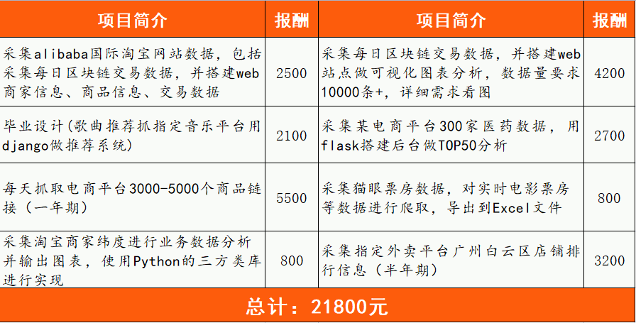 这段时间各行业对爬虫类和数据分类的需求都很大,我光接爬虫私活,零零散散就有20k左右。