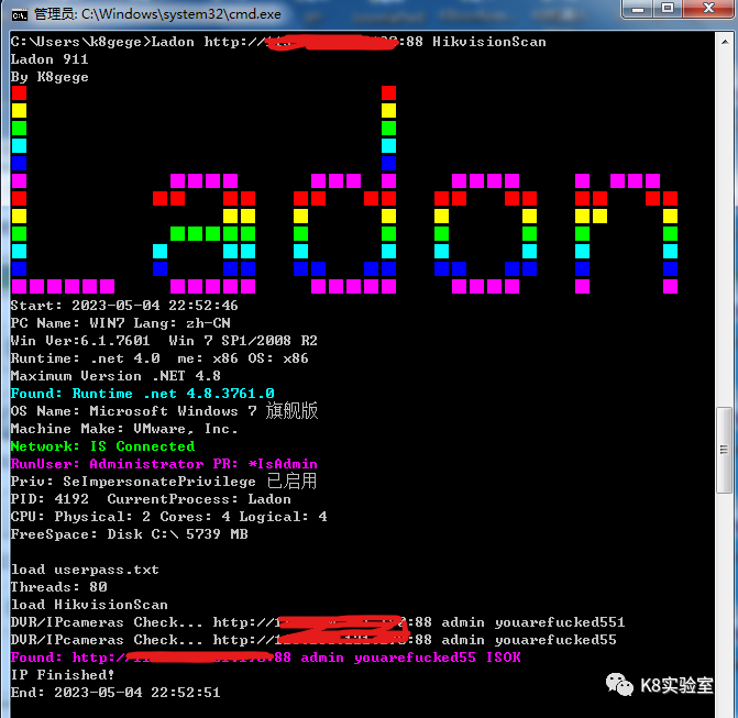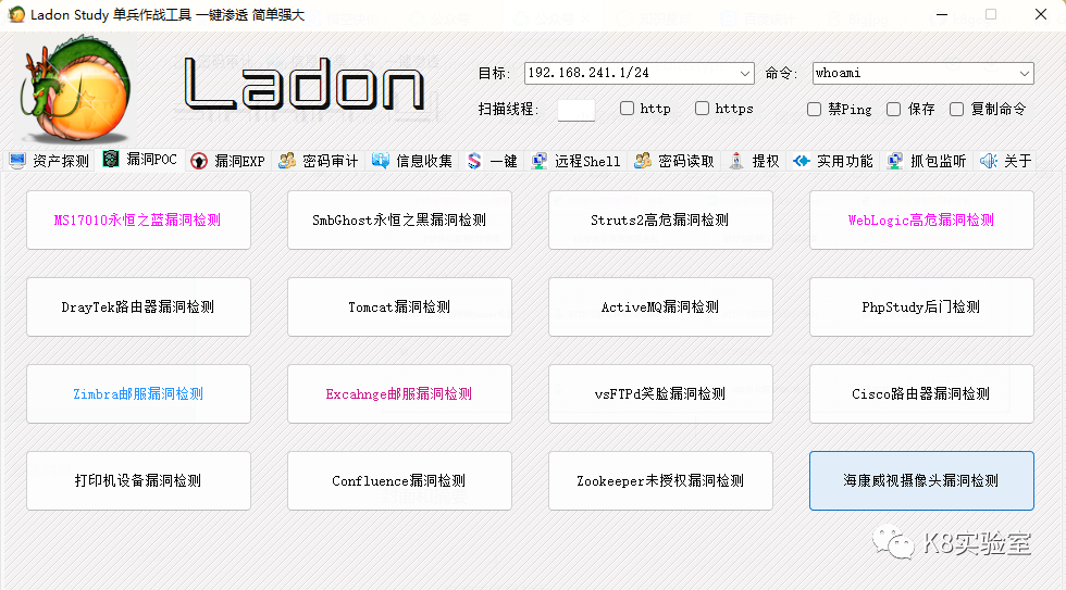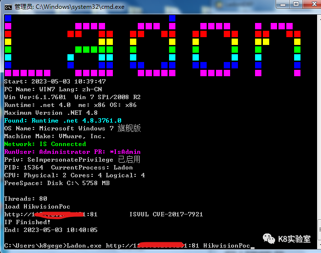 Ladon 192.168.1.8/24 HikvisionScanLadon http://192.168.1.8:8080 HikvisionScanLadon url.txt HikvisionScan