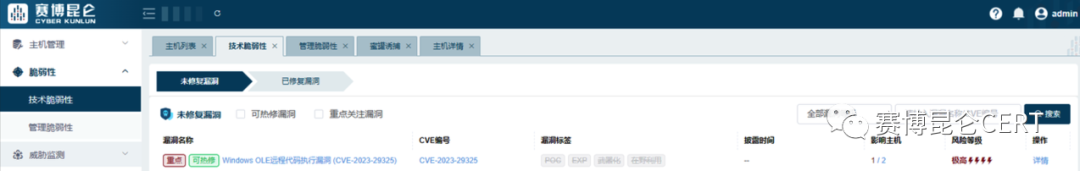 目前赛博昆仑的全平台热补丁引擎已经第一时间支持该漏洞的检测防护,使用赛博昆仑-洞见产品进行防护,无需安装官方补丁即可直接拦截该漏洞。